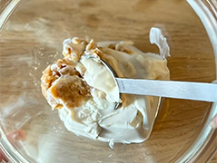 豆腐を潰し、味噌とマヨネーズを入れてよく混ぜる。